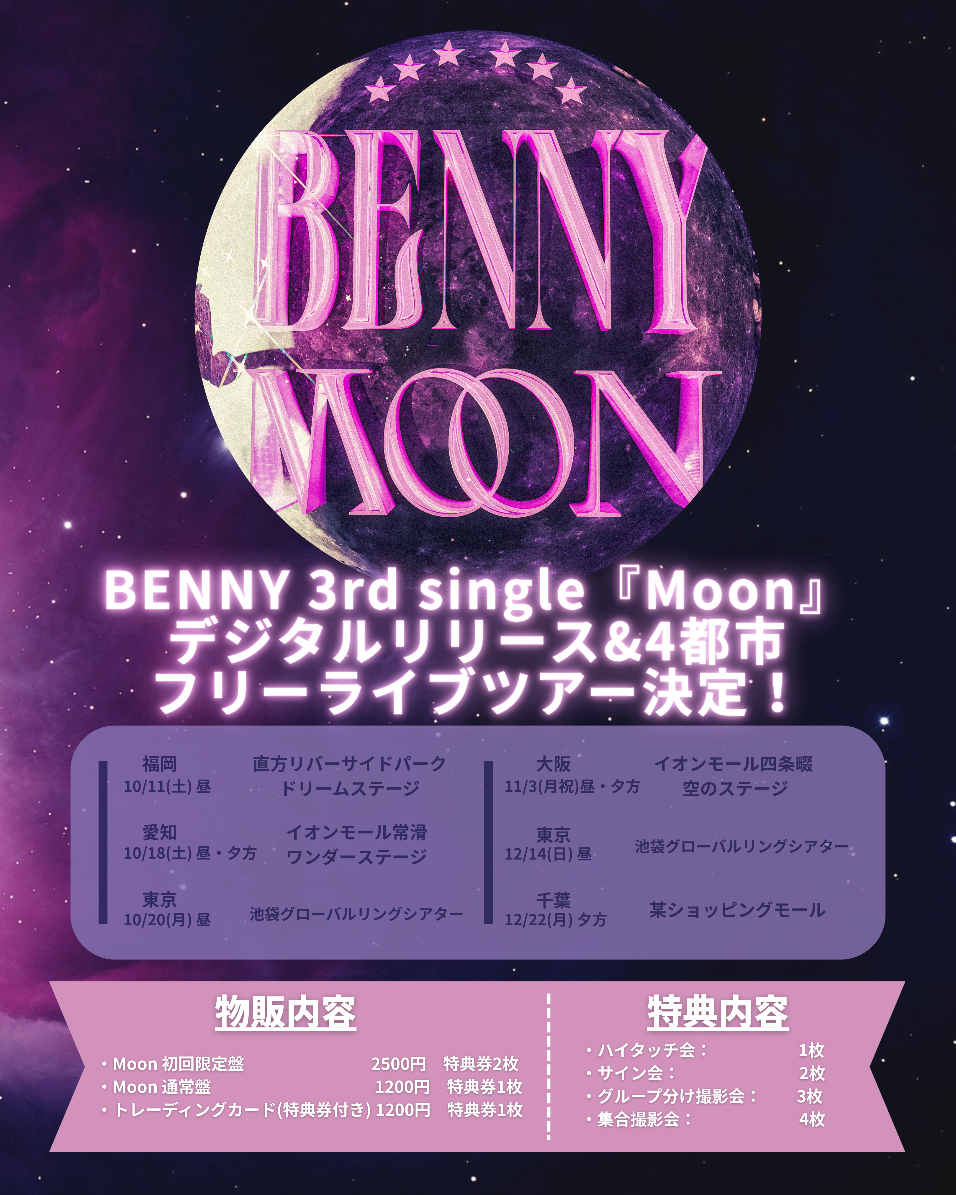 【福岡】10月11日(土) BENNY 3rd single 『Moon』発売記念リリースイベント開催決定!@直方リバーサイドパーク