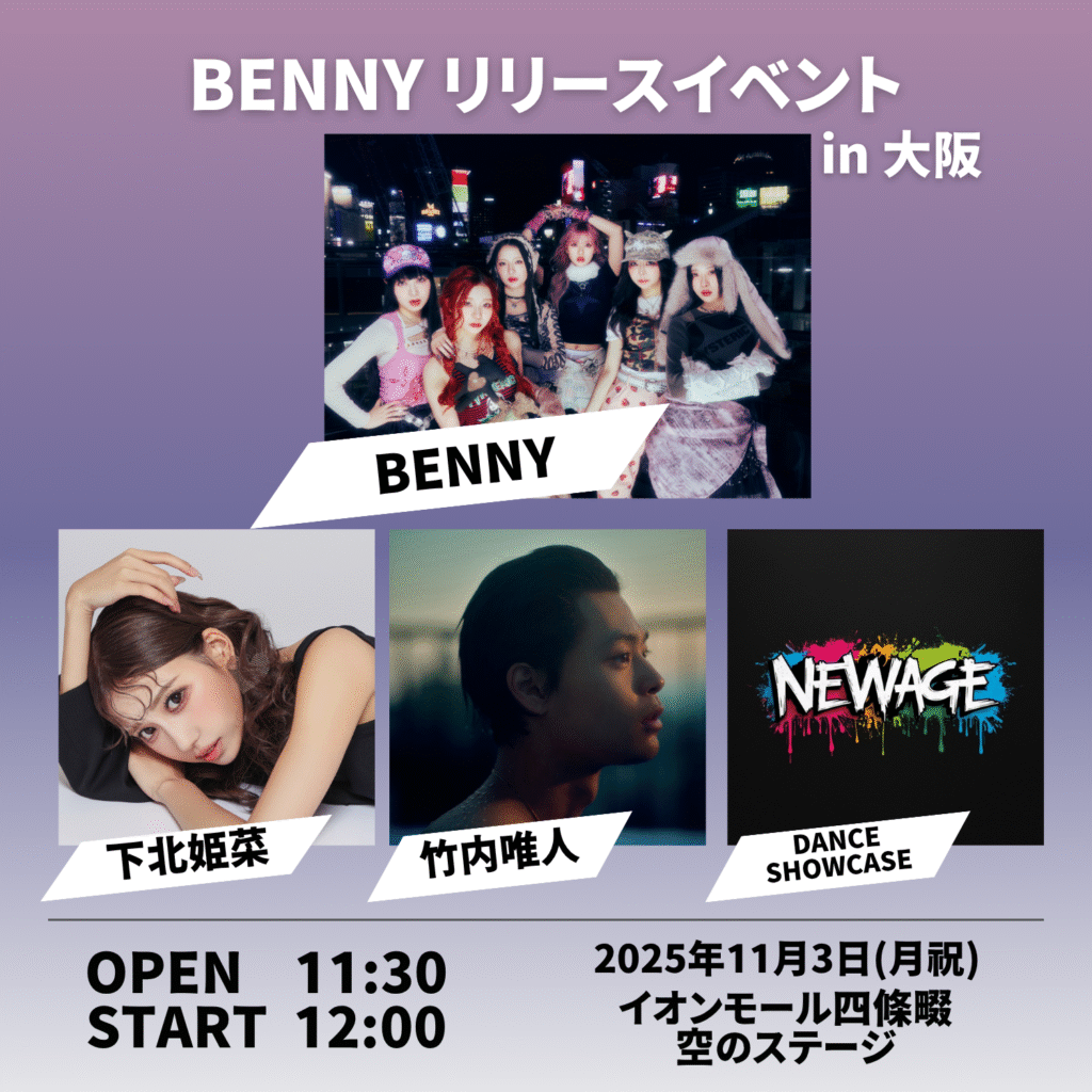 【大阪】11月3日(月祝) BENNY 3rd single 『Moon』発売記念リリースイベント開催決定!@イオンモール四條畷
